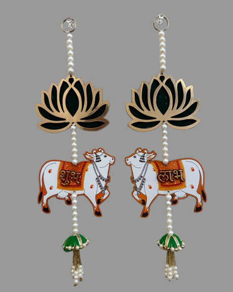 “Traditional Mandir Wall Hanging | Sacred Cow with Lotus Flowers | Temple & Home Decoration”